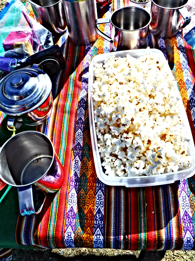 Los porteadores comen y se despiden, los burros y mulas harán lo propio, después se marcharán todos a sus casas a descansar. Nosotras no, nos quedaremos allí, en esa pradera verde atravesada por un riachuelo que se convertirá en nuestro hogar provisional durante los próximos seis días. El tiempo que tenemos, si todo va bien, para terminar de aclimatar, ascender y descender la montaña.