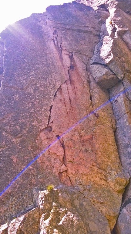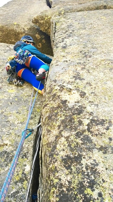 Supongo que yo misma en cierto sentido soy metamórfica. Y por eso oigo la llamada de esta fisura perfecta de casi 30m que recorre un paño alucinantemente vertical. Una brecha técnica de bavaresa, empotres y adherencias. Que en mi opinión tiene todo lo necesario para enamorar.